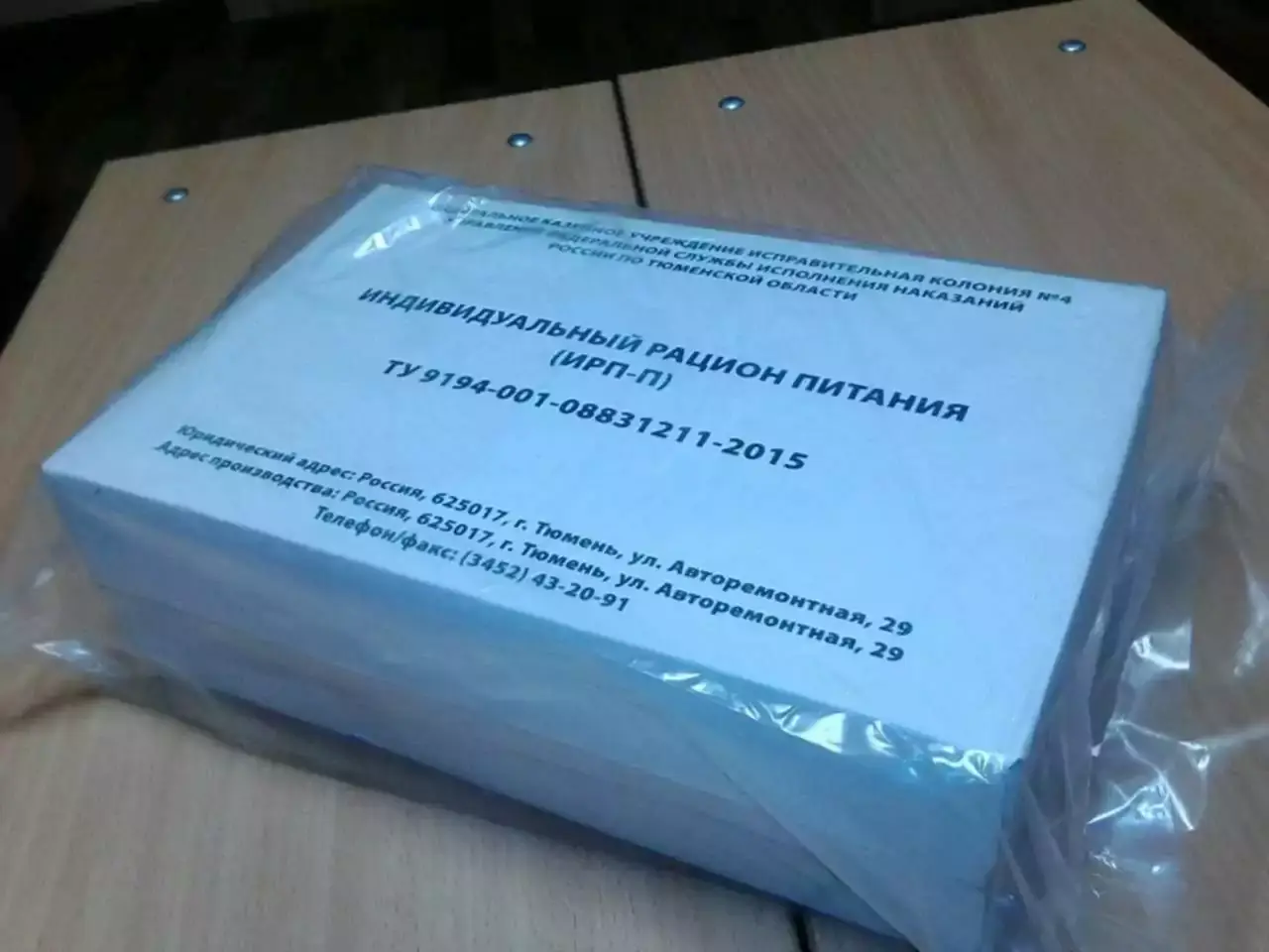 Индивидуальный рацион питания ФСИН