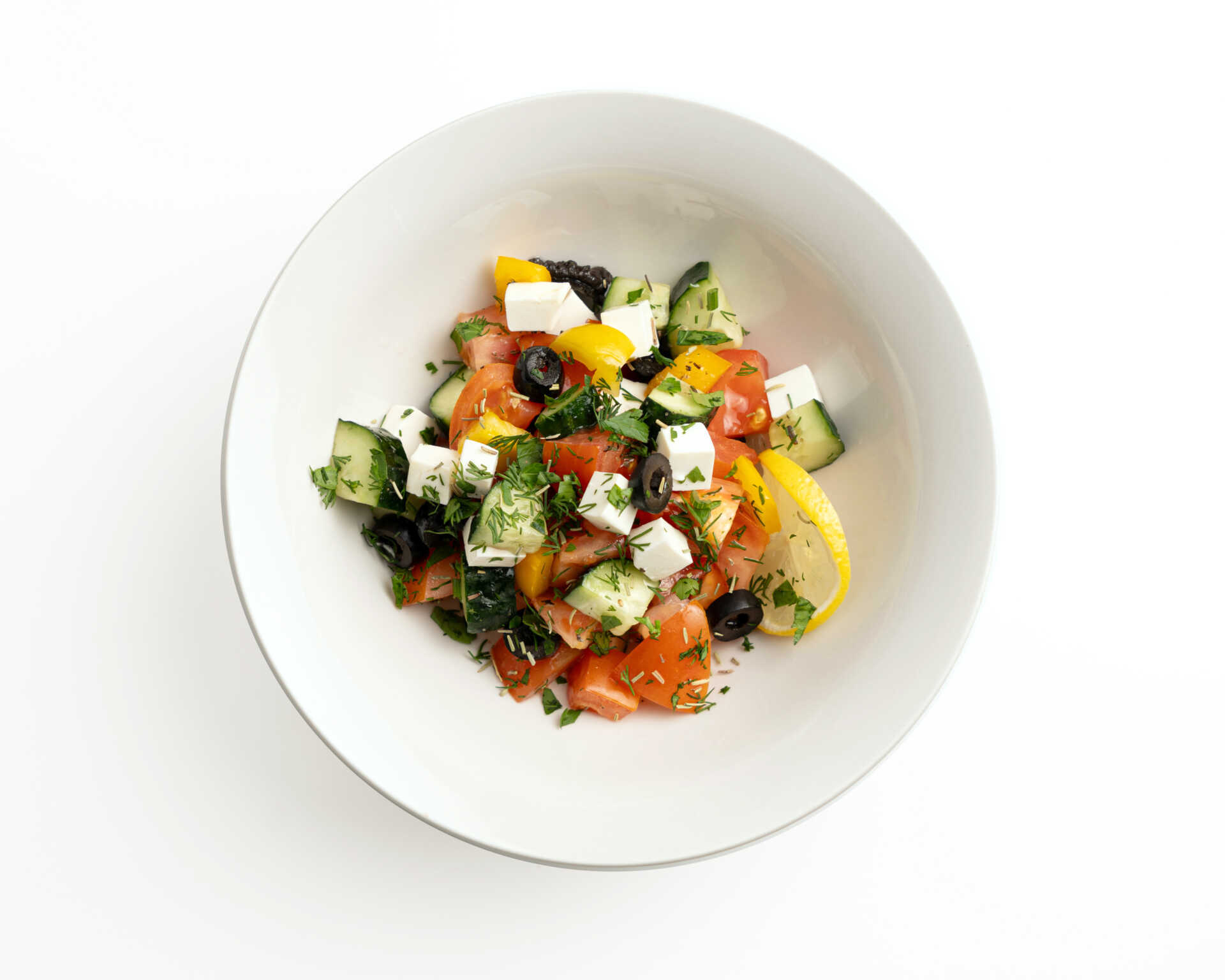 Состав: сыр фета, маслины, помидор, огурец, перец болгарский