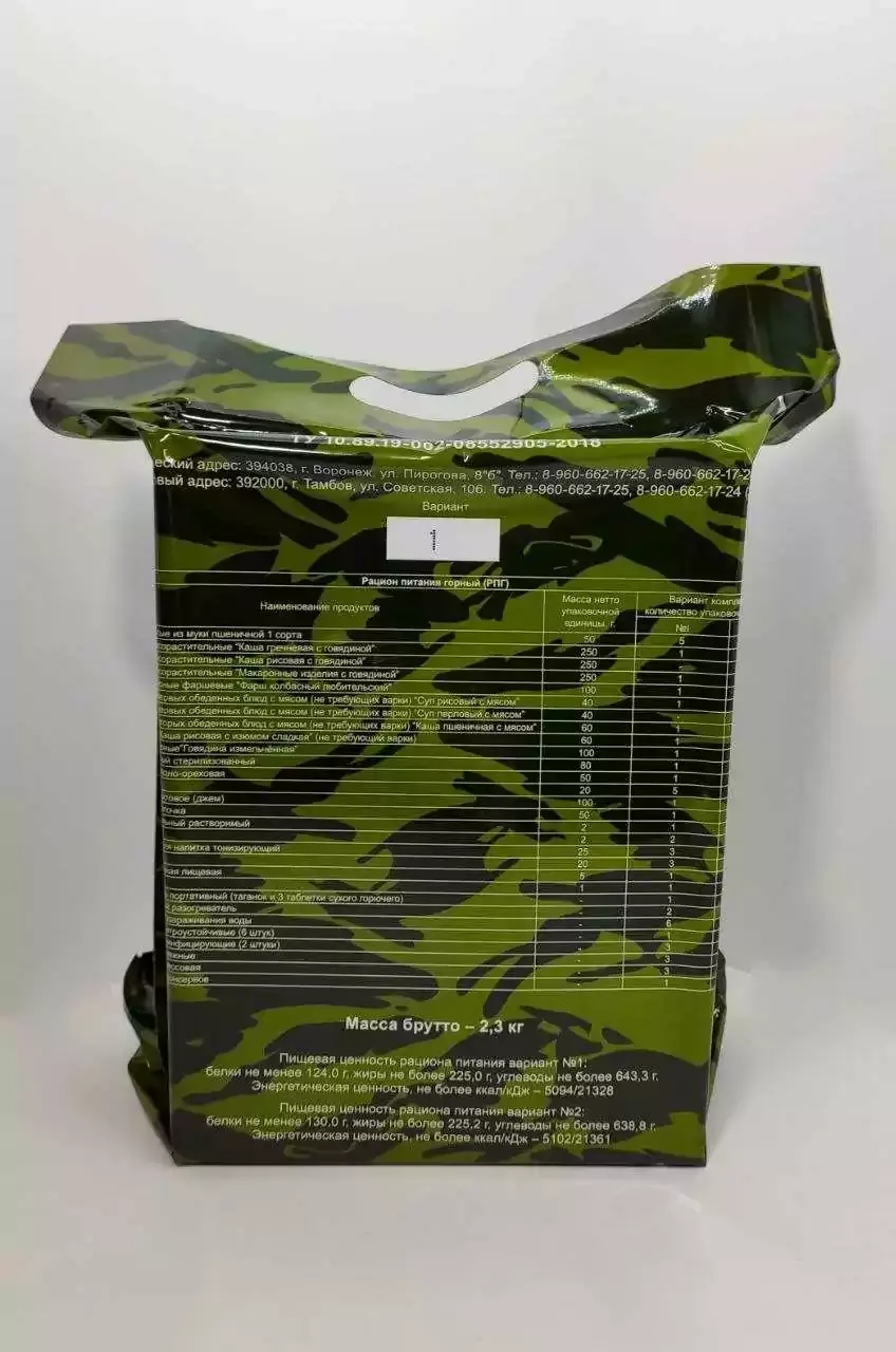 Этот специальный сухпай идеально подходит для альпинистов, горных туристов, исследователей и спасателей, работающих в высокогорных районах. Он также станет отличным выбором для всех, кто планирует активный отдых в горах и нуждается в надежном и удобном источнике питания.